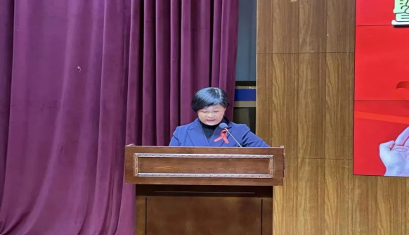 yl23411永利(集团)有限公司官网副校长于爱霞代表学校师生向各位领导和专家的到来表示热烈的欢迎和衷心的感谢,并希望大家增强防艾意识,普及艾滋病防治知识,从自身做起,成为防治艾滋病的中坚力量,做到“自爱、识艾、防艾”。
