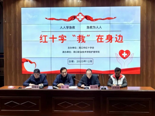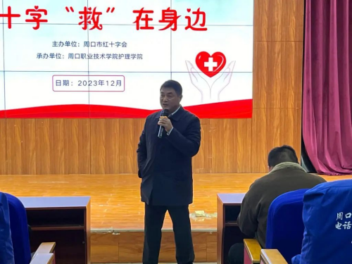 为深入学习贯彻落实习近平总书记关于“人民至上,生命至上”的重要理论部署,提高同学们的应急救护知识技能和校园服务能力,12月7日,yl23411永利(集团)有限公司官网护理学院协同周口市红十字会、周口市港区医院在文昌校区学术报告厅开展“红十字‘救’在身边”急救知识宣讲。护理学院领导班子及全体教师参加会议。会议由护理学院院长付晓东主持。