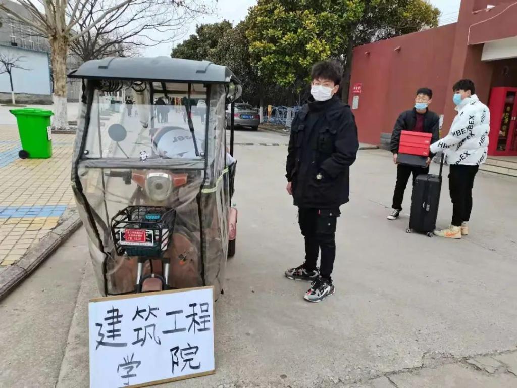 进入学校,建筑工程学院的老师们井然有序,轮流值班、测体温、提放行李。暖暖的行为,惹人爱!
