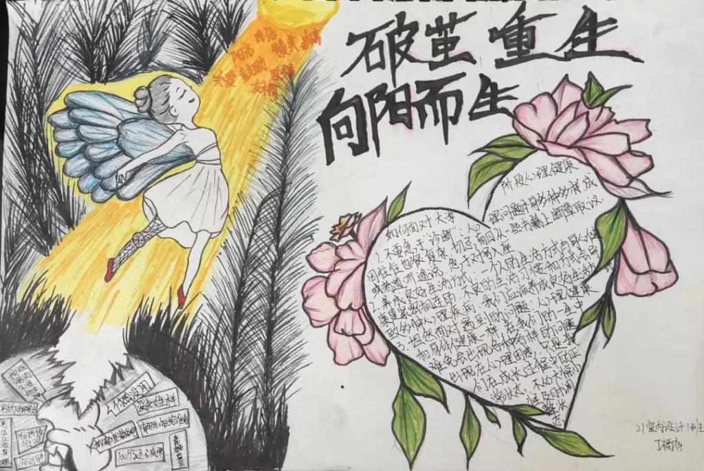 在本次活动中,同学们以班级为单位参与评选,自由创作并提交了作品。作品采用各种形式,例如插画、照片、文字等,表达同学们对心理健康的理解、思考和感悟,同时强调积极的心态和健康的生活方式。