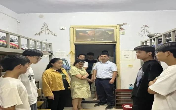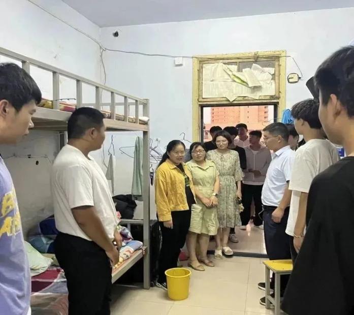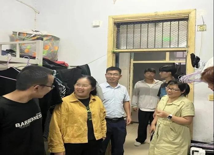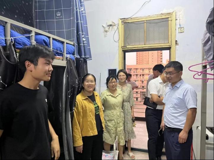 为加强学生管理工作,规范学生住宿行为,进一步了解学生返校心理,督促学生养成良好卫生习惯,营造安全、整洁、文明、和谐的住宿环境。9月3日,建筑工程学院院长刘胜杰,副院长杨改、学管办主任郭华伟、教学办主任李涵及22级辅导员深入学生宿舍开展看望22级返校学生。
