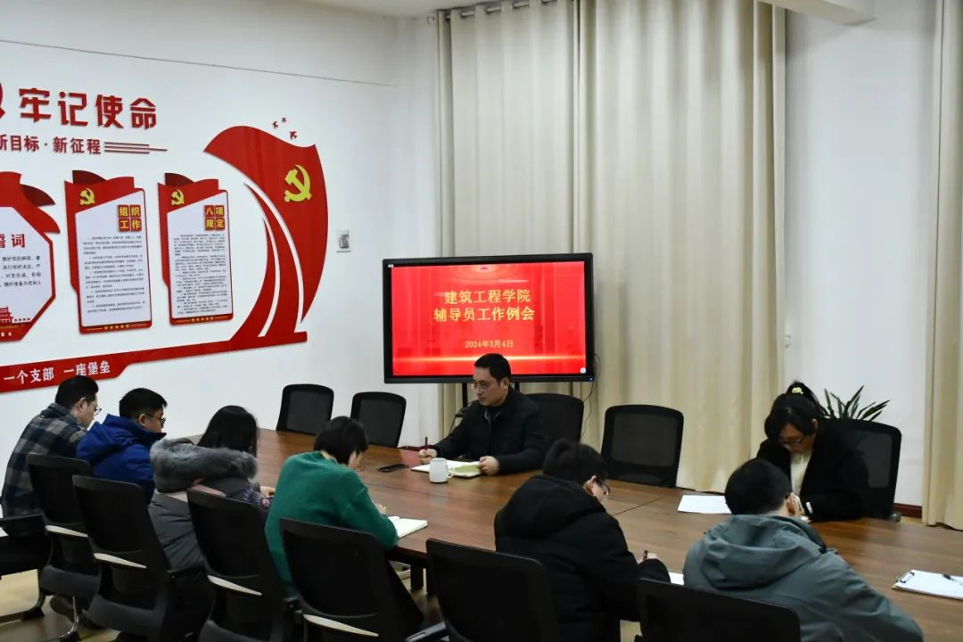 为了进一步提高辅导员的工作效率,推进师生间的交流,2024年3月4日,建筑工程学院召开辅导员工作例会,参会人员有建筑工程学院学院党总支书记王晖、副院长杨改及全体辅导员,会议由杨改主持。