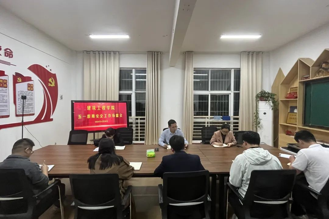 为确保五一假期学生安全,提高学生安全防范意识,2024年4月29日,建筑工程学院在党员活动室召开五一假期安全工作布置会。参加本次会议的有建筑工程学院党总支书记王晖、副院长杨改、副院长宁丽平、全体辅导员及团学干部。会议由杨改主持。