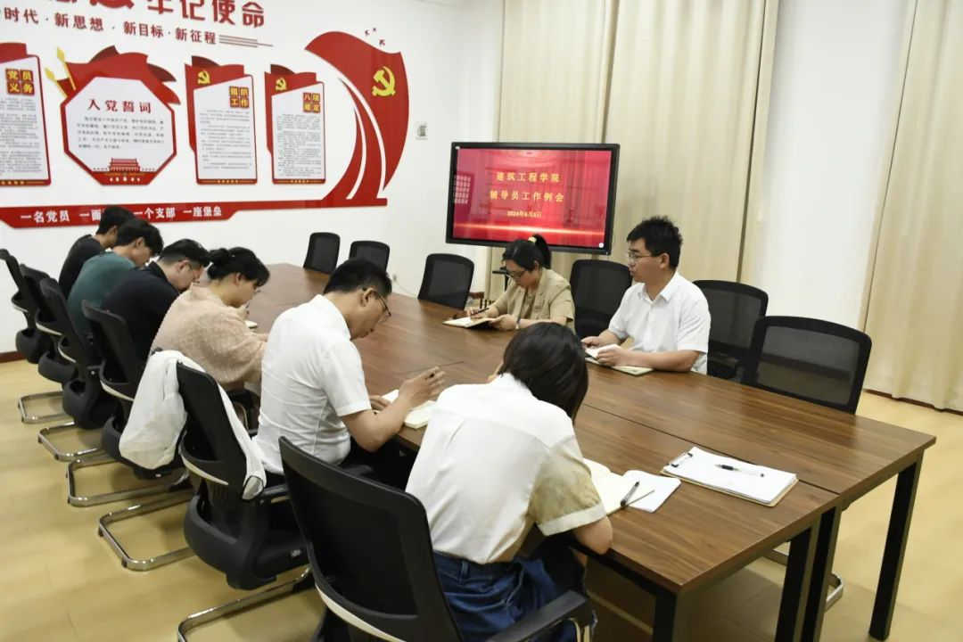 为加强学院学生日常管理工作,促进辅导员团队建设,增强与学生之间交流。2024年6月3日,建筑工程学院在党员活动室召开辅导员工作例会。建筑工程学院副院长杨改、学管办主任郭华伟及各辅导员参加会议,会议由杨改主持 。