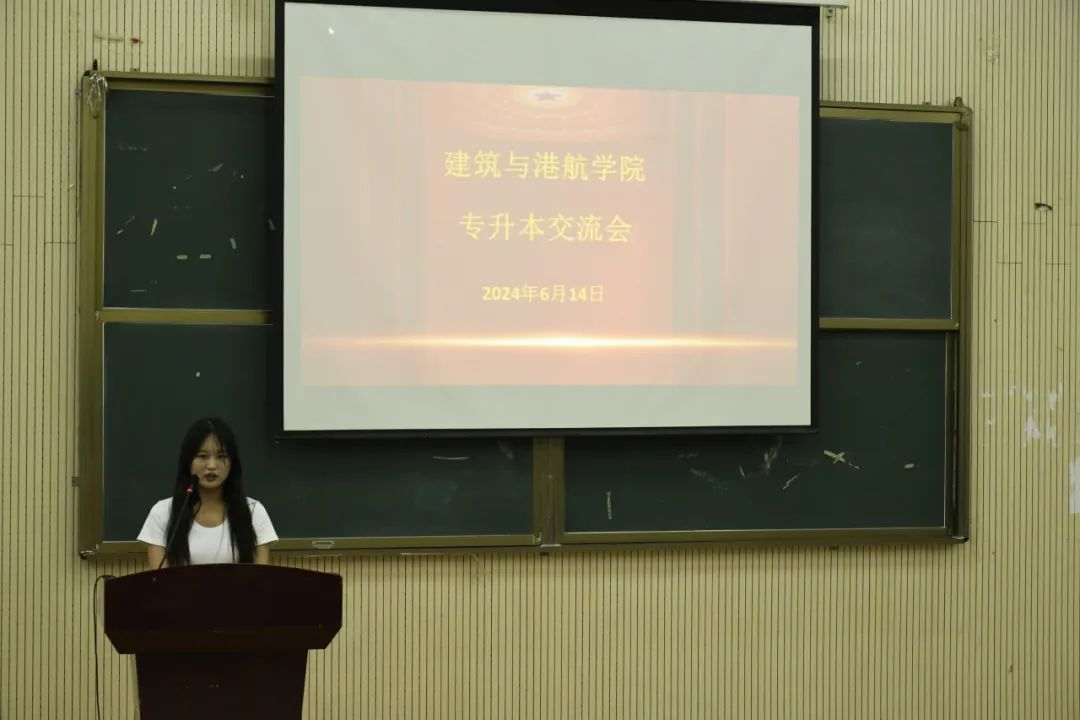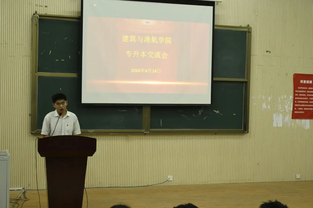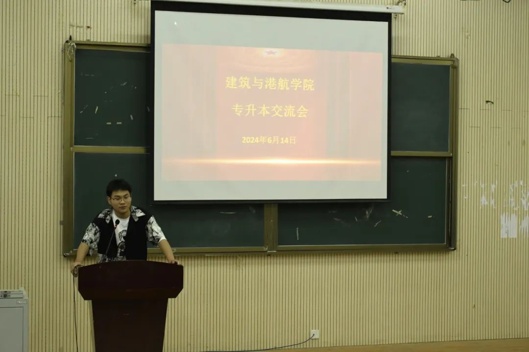 毛露萱、张嘉琪、乔启健、袁家家等同学依次分享专升本经验。他们着重讲解了专升本考试的具体流程和要点,包括报名内容、考试时间、备考方法,并提醒同学们要做好充分的准备,合理规划时间,制定科学的学习计划,保持持之以恒的努力和坚定的信心。