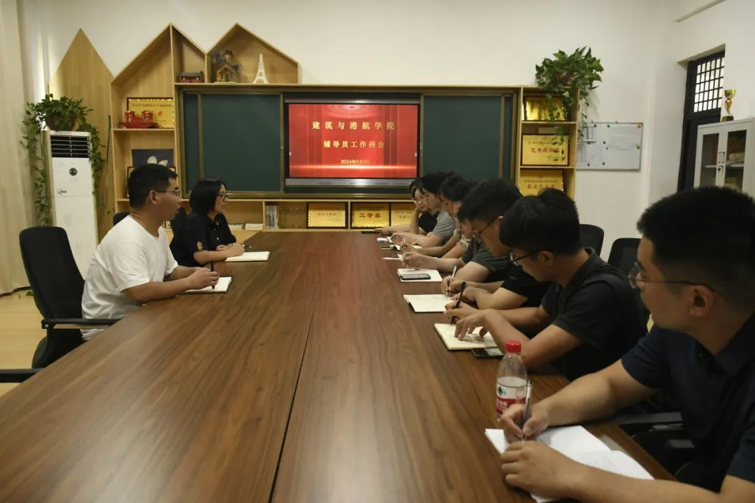 为加强学院学生日常管理工作,促进辅导员团队建设,增强与学生之间交流。2024年9月10日,建筑与港航学院在党员活动室召开辅导员工作例会。建筑与港航学院副院长杨改、学管办主任郭华伟及各辅导员参加会议,会议由杨改主持 。