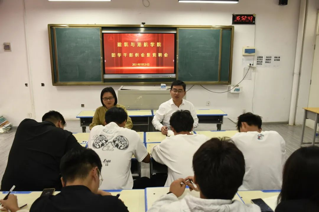 为提升我院学生干部的工作效率,充分发挥模范带头作用。2024年9月24日,建筑与港航学院在6216召开团学干部例会暨竞聘会。副院长杨改、学管办主任郭华伟以及全体团学干部参加了此次会议,会议由杨改主持。